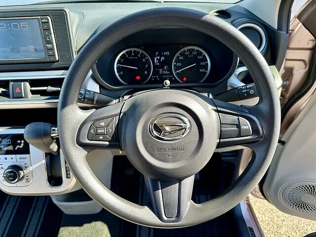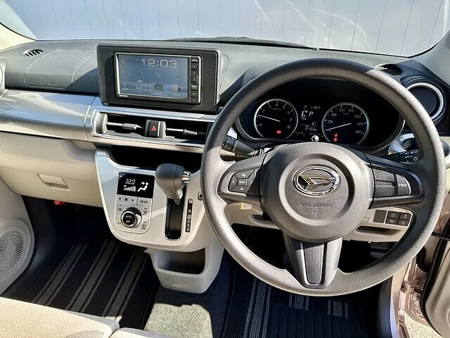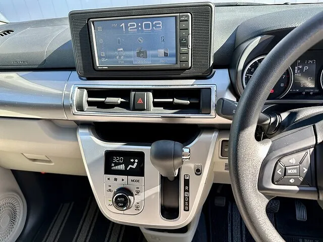 ダッシュボード中央には大きなナビ画面を配置。オートエアコン付きで、温度設定や風量調整も直感的に操作できます。
