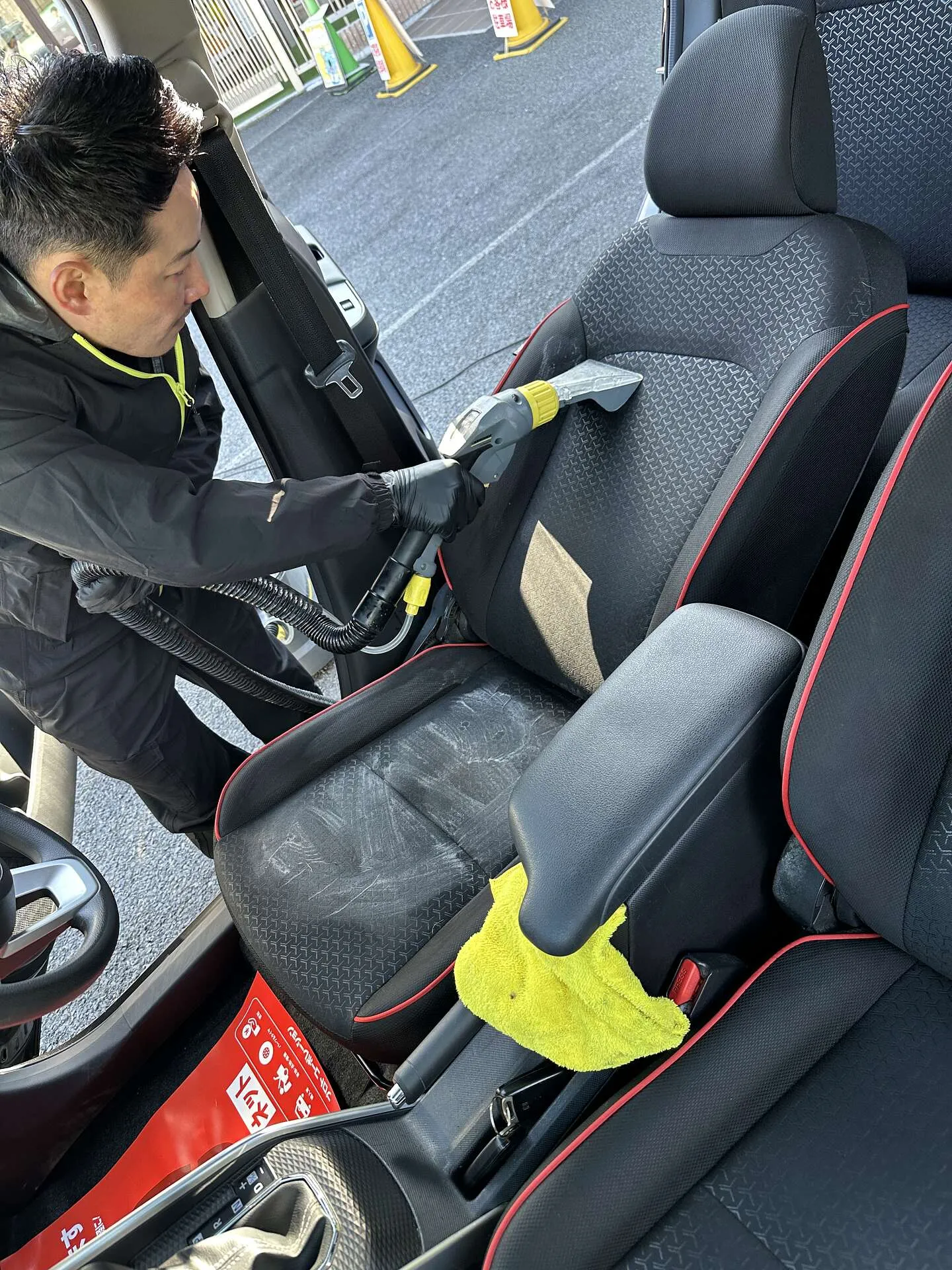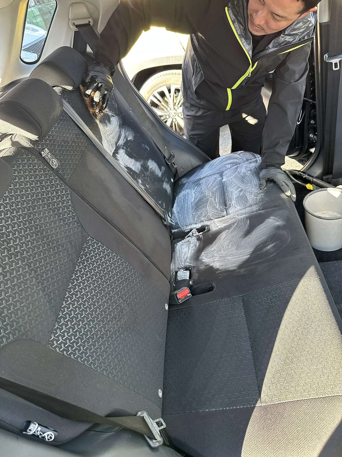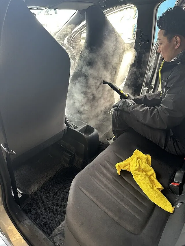 高温スチーマーを使用した内装クリーニングを行っています。