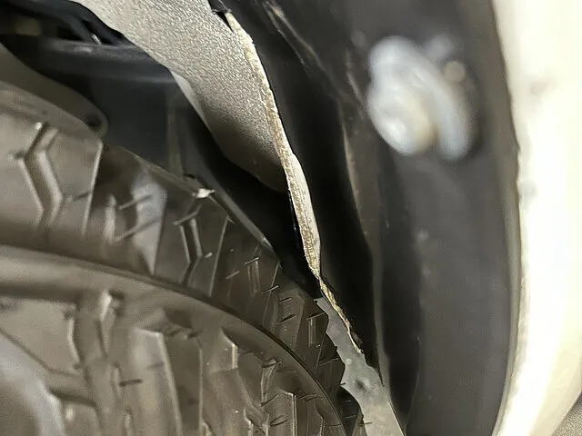 車高が上がったことで、メンバー部分(フレーム)にタイヤが干渉するため、タイヤがスムーズに回転し、干渉を避けられるようにメンバーカットを実施。メンバーの一部を切ってスペースを確保します。