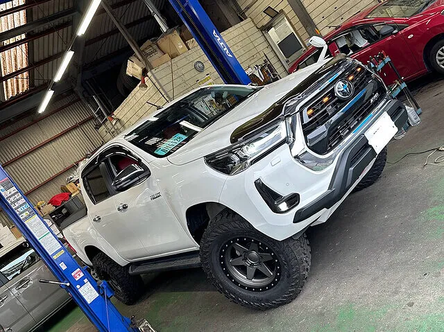 ノーマルのハイラックスを、オフロード走行に適したインチアップ仕様にカスタムしていきます。