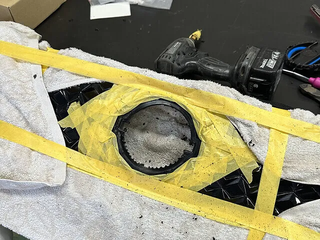 純正のエンブレムは強力な両面テープで固定されているため、無理に剥がすと塗装を傷める可能性があるため慎重に作業を進めます。