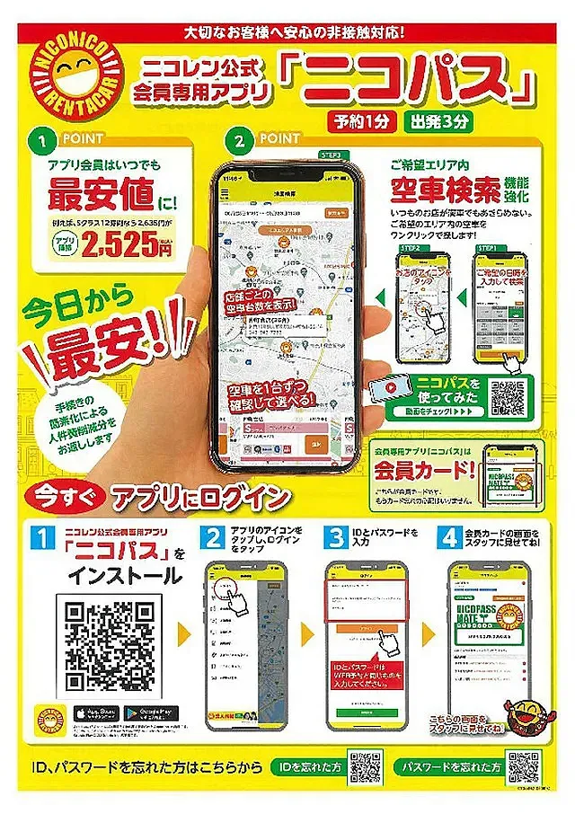 ニコニコレンタカー専用アプリ「ニコパス」が非常に便利!