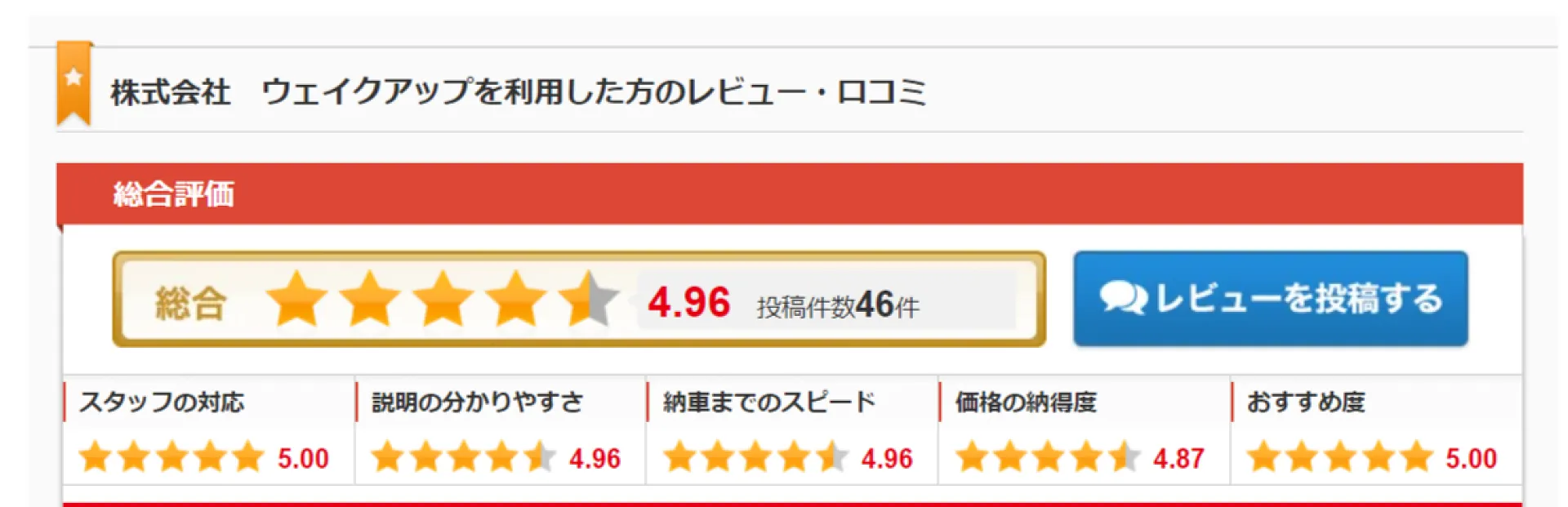尾張旭市にあるウェイクアップは、1万台以上の豊富な実績を誇る認証工場なので初めての方でも安心!