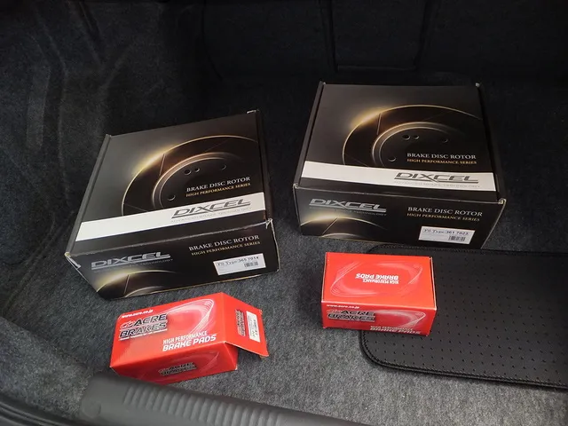 ブレーキパッド・ブレーキディスク交換を実施。今回は社外品のブレーキパッドとブレーキディスクになります。