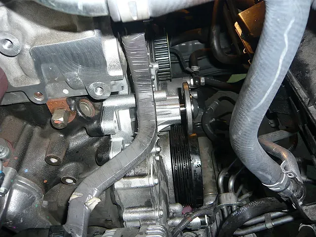 トヨタ ハイエースの冷却水漏れ修理にて、タイミングベルトとウォーターポンプを交換しました。